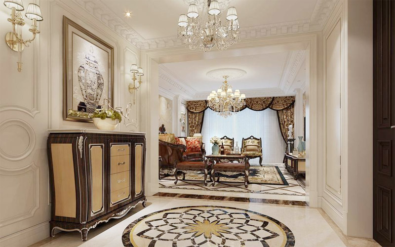 | 案例說明 | 本案四季華庭小區(qū)房子裝修,?歐式古典風(fēng)格從簡單到繁雜、從整體到局部,精雕細(xì)琢,鑲花刻金都給人一絲不茍的印象。連貫大氣整體客餐廳空間和聚氣的門廳,開放式的玄關(guān)帶來開闊的視野,圓弧形古典的大理石門廳地拼造型就像懷抱一樣迎接您的到來。整體的空間隔而不斷,空間層次分明,同元素的地面頂面設(shè)計又相互輝映,相輔相成。 | ||